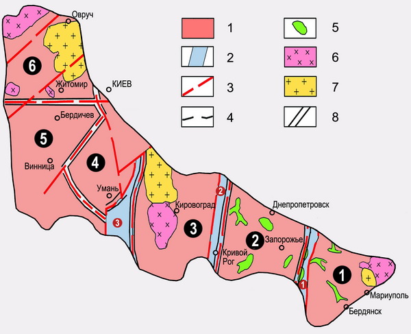1 � ��������� ����������� ���� (1 � �����������, 2 � ������-��������������, 3 � ��������������, 4 � ��������-���������, 5 � �����������-�������, 6 � ������-��������); 2 � ����������� ������ ���� (1 � �������-�������������, 2 � ���������-������������, 3 � �������������); 3 � �������� ��������� �������; 4 � ������� ����������� ����; 5 � ��������� �������������� ���������; 6 � ������������������� ������-��������� �������; 7 � �������������������� ������-��������� �������; 8 � ������� ����������.